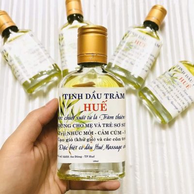Tinh dầu tràm Huế, chiết xuất từ cây tràm gió, nổi tiếng với khả năng giữ ấm, kháng khuẩn, kháng nấm và đặc biệt an toàn cho trẻ sơ sinh, phụ nữ mang thai. Công dụng chính bao gồm trị cảm lạnh, ho, sổ mũi, giảm đau nhức xương khớp, trị muỗi/côn trùng cắn, đầy hơi và làm thơm không khí.
